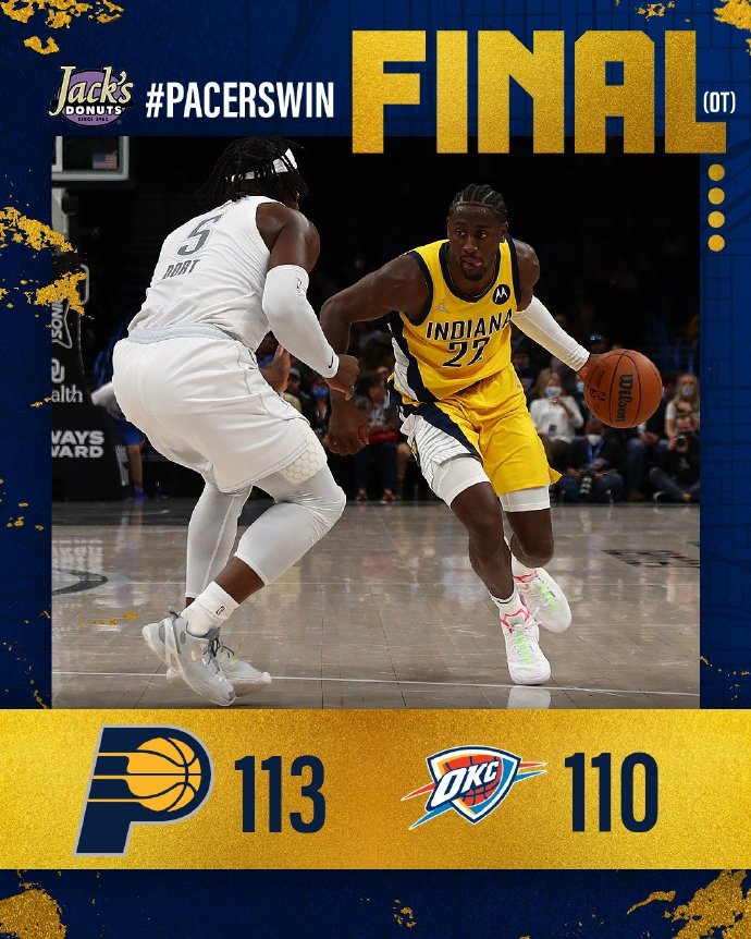 JRS低调看直播1月29日讯 NBA常规赛,雷霆今日迎战步行者,前者六连败后排在西部倒数第二的位置,后者则是遭遇三连败暂列东部第十三位。比赛上来步行者率先进入状态取得领先,但是在首个暂停之后雷霆的命中率回升,两队开始展开拉锯,次节双方也都未能获得拉开分差的机会,场上比分交替领先,半场结束时雷霆领先3分。易边再战,雷霆一波12-0的小高潮将分差拉开到了两位数,但是亚历山大却扭伤脚踝离场,步行者随后将比分追了上来,比赛悬念一直保持到了最后,关键时刻兰姆和勒韦尔连续绝杀不中,比赛进入加时,加时赛双方依旧打得难解难分,雷霆连续错失机会,最终步行者加时险胜雷霆,结束三连败的同时也送给后者七连败。