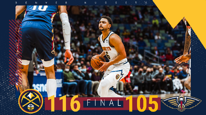 JRS低调看直播1月29日讯 NBA常规赛继续进行,鹈鹕主场迎战掘金,鹈鹕母亲18胜29负排名西部第11,而掘金则是一波3连胜,26胜21负排在西部第6位。首节格拉汉姆状态不错里突外投帮助鹈鹕打出不错开局,但之后进攻端突然断电,被约基奇和戈登联手打出进攻高潮帮助掘金领先了9分,次节鹈鹕上来接连攻击内线打出小高潮一度反超比分,但掘金通过出色的外线手感迅速回应并能保持住微弱领先优势。第三节,双方上来展开胶着拉锯战,比分多次打平,但掘金又依靠外线手感接连扔进三分再次掌握住8分领先,末节鹈鹕上来又陷入得分荒,掘金抓住机会接连扔进中远投一度领先到16分,但鹈鹕没有放弃,接连通过造杀伤续命,但约基奇站出来连得6分直接带走比赛,最终掘金力克鹈鹕,拿到4连胜。