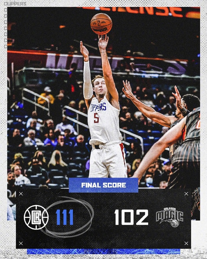 JRS低调看直播1月27日讯 NBA常规赛魔术对阵快船,快船上场比赛刚刚完成35分大逆转。开场后两队进入状态都比较慢,魔术占据略微优势。第二节开始后魔术首先打出攻势建立起14分领先,不过此后快船外线找到手感一阵三分雨下在上半场结束时以49-48领先1分。下半场回来仍旧是魔术率先发力,但快船再次迎头赶上,最后一节魔术进攻失准,快船则稳健发挥,他们一举锁定胜局,最终快船111-102击败魔术。