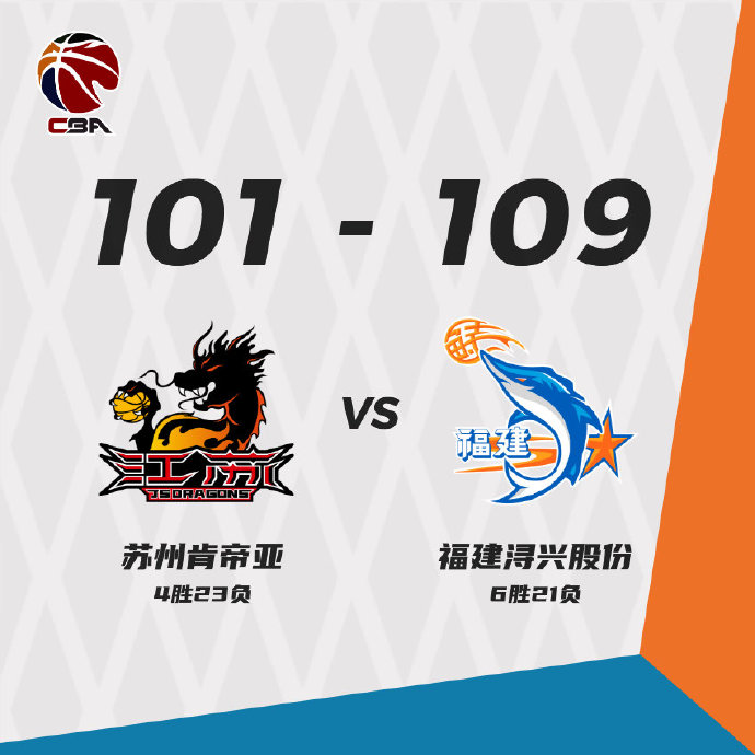 JRS低调看直播1月26日讯 CBA常规赛江苏对阵福建,两支球队目前排名都在积分榜下游,江苏近期也是遭遇4连败。开场后两队就在外线展开较量,福建靠着高登、李江淮和陈林坚三人的发挥逐渐取得领先。第二节高登和陈林坚带领福建继续发动攻势,不过江苏依靠不断冲击内线没有让分差继续拉大,上半场福建59-46领先。第三节史鸿飞频频砍分一度帮助江苏将分差缩小到个位数,但高登得分能力太强,在他的发挥下福建再次拉开比分。第四节江苏再次发起反扑一度追到只落后5分,但福建外线两记三分浇灭江苏反扑气焰,最后时刻高登遭到驱逐,最终福建109-101送给江苏5连败。