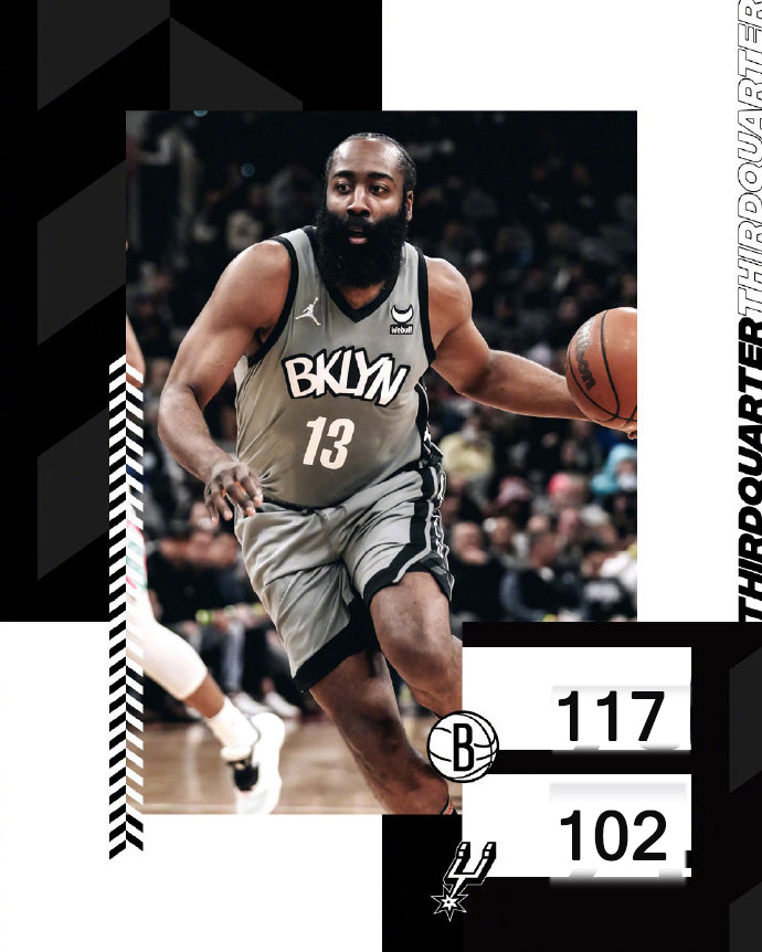 JRS低调看直播1月22日讯 NBA常规赛继续进行,篮网客场挑战马刺。篮网近期状态不佳,杜兰特也遭遇伤病,虽然仅能够出战客场,但欧文的回归绝对是雪中送炭。马刺在遭遇一波连败之后稍有回暖,但依然仅仅排在西部倒数第四。本场比赛米尔斯和阿德迎战旧主。一开场,哈登和欧文联手带队帮助篮网开局14-5领先,马刺回敬7-0的攻势一举反超,首节结束马刺领先2分。第二节,两队依然打得非常激烈,比分交替领先,哈登得分助攻一肩挑,马刺多点开花不甘示弱,半场战罢马刺51-50领先1分。下半场,米尔斯连得5分打破得分荒,哈登也连拿8分,马刺不急不躁连续篮下得手一度夺回优势,篮网打出6-0的攻势带着5分领先进入末节。第四节,哈登和欧文合力拿分帮助篮网取得两位数领先,并且稳扎稳打将优势保持到了最后。最终,篮网力克马刺,登顶东部榜首。