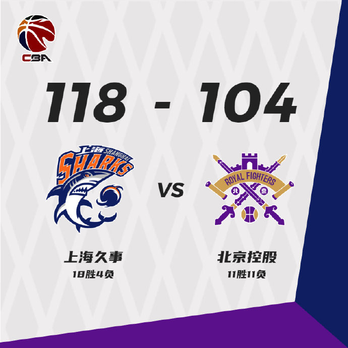 上海(18-4):王哲林17分4板、郭昊文25分8板3助、罗汉琛15分4板6助、富兰克林13分5板4助、刘铮10分、冯莱17分8板5助3断