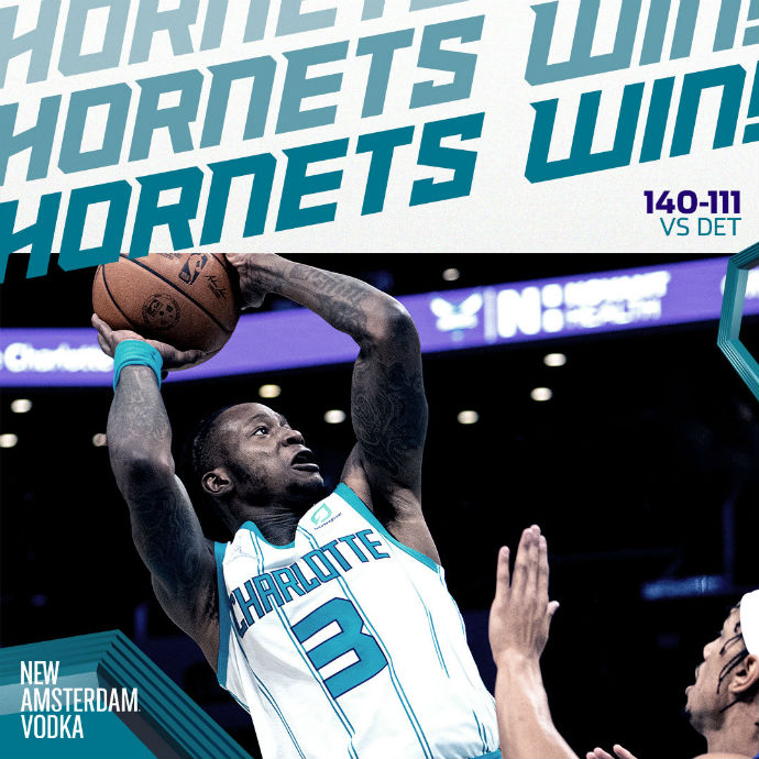 JRS低调看直播1月6日讯 NBA常规赛继续进行,黄蜂坐镇主场迎战东部倒数第二活塞,本场格兰特,斯图尔特等人继续缺阵。一开场黄蜂进攻状态极佳,打出一波18-7取得领先,随后黄蜂连续失误,活塞借此机会蚕食分差,随后黄蜂连中三分再次拉开比分,活塞则陷入得分荒,以19-37落后进入第二节。次节黄蜂进攻状态不减,继续拉大分差至20分以上,暂停后麦格鲁特和波特连续得分帮助活塞迫近比分,随后双方陷入拉锯战,节末活塞连续命中,而黄蜂仅依靠罚球取分,65-51结束半场。下半场开场双方进入对攻战,在对方禁区予取予求,活塞一度将分差维持在15分上下,但是节末陷入得分荒,黄蜂依靠突破反击和三分再次拉大分差至25分进入末节。第四节开场,乌布雷单节飙中八记三分使比赛失去悬念,活塞则连续进攻禁区维持进攻,最终黄蜂140-111主场大胜活塞。