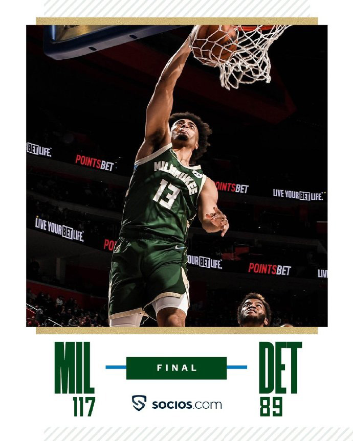 JRS低调看直播11月3日讯 NBA常规赛继续进行,活塞主场迎战雄鹿,活塞打了6场只有康宁汉姆首秀那场取得胜利,排名东部垫底;而雄鹿最近由于大洛和霍勒迪的伤停经历3连败,排名也掉到东部第11。开局活塞格兰特率先找到外线手感,但字母哥马上带领雄鹿回应一波小高潮并取得领先,后半节双方命中率下降后,雄鹿还是依靠外线领先了7分,次节开局活塞依靠替补将分差追近至2分,但康诺顿站出来连续外线扔进三分为雄鹿止血,末段字母哥又连续助攻队友一波小高潮领先到18分。第三节,字母哥里突外投阻挡不了带领雄鹿将分差拉开至20分,活塞外线不开追分始终不解渴,末段沃拉也连续突内线上篮,雄鹿将分差拉开至28分,末节字母哥上来就带领雄鹿将分差拉开至30分以上,随后比赛失去悬念成为练兵时间,最终雄鹿大胜活塞,终止自己的3连败。