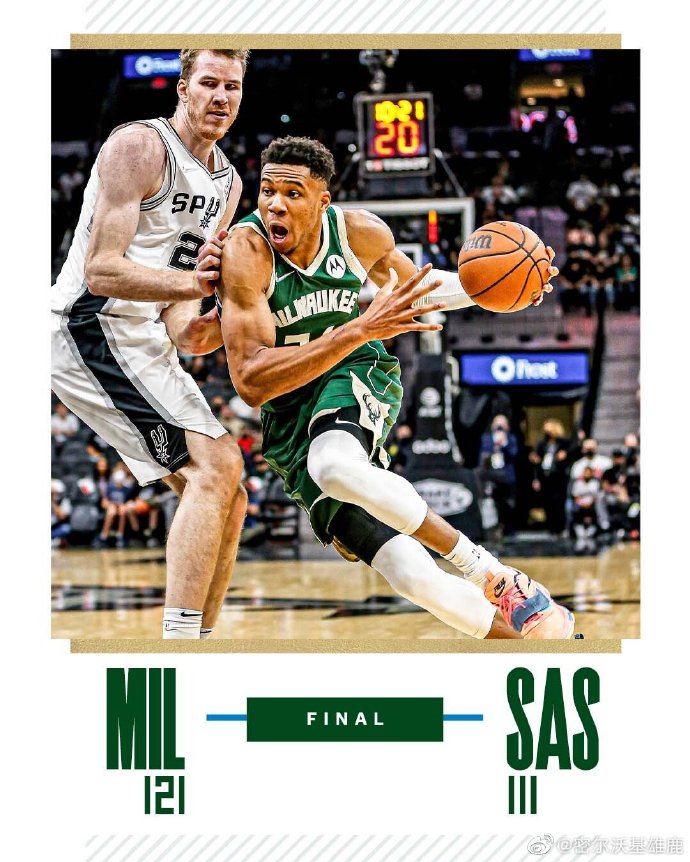 JRS低调看直播 10月24日讯 马刺今日坐镇主场迎来卫冕冠军雄鹿的挑战,两支球队新赛季打完的两场比赛都是一胜一负。首节之争马刺率先发力以一波10-3的进攻取得开局领先,这波进攻帮助马刺保持着大半节的主动权,奈何雄鹿进攻端一直保持着高效进攻,这也让发挥不错的马刺一直无法拉开比分,而小个阵容下的雄鹿在外线不断开火,第二节以外线为主一波9-0的小高潮实现比分反超并带着4分领先进入下半场。第三节两队打出跌宕起伏的进攻高潮,雄鹿开局抢攻一度拿到13分领先,然而马刺节中抓住对手哑火回敬一波20-4的攻势实现逆转,不过实力更加均衡的雄鹿很快重新控制局面,他们节末一波11-0的攻势夺回主动权,末节马刺几次追近比分但都没能扭转局势,雄鹿依靠康诺顿最后两记关键三分重新拉开比分并奠定胜利。最终,雄鹿客场力克马刺拿下比赛。
