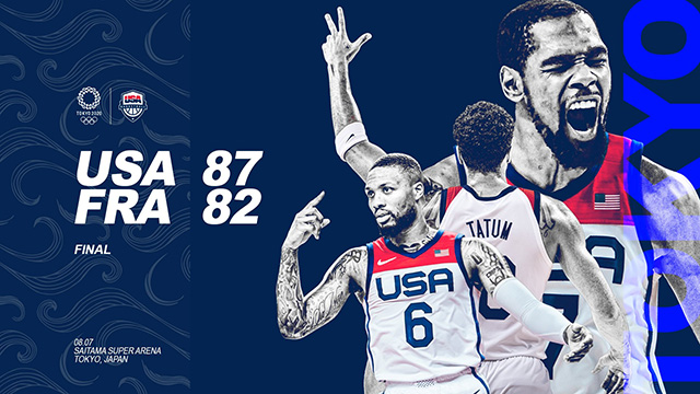 JRS低调看直播8月7日讯 美国男篮和法国男篮今日迎来奥运会决赛争夺,美国上一场轻松击败澳大利亚杀入决赛,法国则凭借巴图姆的致命封盖赢下决赛门票,值得一提的是,2019年世界杯中法国男篮在四分之一决赛中10分击败美国并拿到最终第三名的成绩。首节之争法国是更早进入状态的一方,然而拉锯战里自己整体手感一般导致分差迟迟拉不开,这也给了慢热的美国机会,后者在杜兰特和塔图姆的联手中送出12-4的攻势迅速追上比分,次节杜兰特继续杀神一般砍分,在半节未结束之前他就攻下21分并带领美国拉开两位数领先,不过法国及时悬崖勒马,戈贝尔节末连砍8分帮助法国将劣势缩小至5分结束上半场。第三节塔图姆连砍7分一度帮助美国再次拉开两位数领先,不过法国总能崩盘边缘找回状态,卢瓦乌和巴图姆两记三分为法国保留希望。末节法国一波7-2的开局将分差追至3分看到了希望,不过美国关键时刻迅速回暖并在塔图姆的三分进球中重新取得10分领先奠定胜局。最终,美国男篮力克法国再度摘得奥运桂冠。