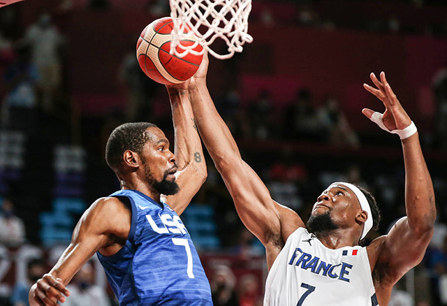 JRS低调看直播7月25日讯 东京奥运会男篮小组赛A组首轮,美国男篮对阵法国男篮,法国男篮阵中有戈贝尔为首的诸多NBA球员,实力不容小觑;美国男篮热身赛状态一般,但作为卫冕冠军的他们还是十分有信心。开局法国队在富尼耶带领下打得很主动,但随后进攻乏力,而美国队在杜兰特和阿德巴约带领下内外开花很快打出一波小高潮领先到7分,次节法国还是依靠内线高度连续追分,但美国又依靠外线射手群们连续发炮重新稳住8分的领先优势。易边再战,富尼耶成为法国领袖,他里突外投连续砍分帮助法国紧咬比分,美国又陷入得分荒,德科洛的连续外线帮助法国反超了6分,末节法国陷入得分荒给美国机会,霍勒迪凭一己之力连砍10分将比分反超回来,随后阿德巴约关键罚球不进加传球失误让富尼耶抓住机会扔进三分重新反超回来,德科洛两罚基本杀死比赛,最终法国逆转险胜美国,拿到小组赛首场胜利。