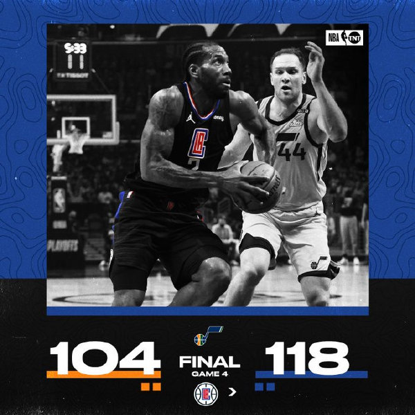 JRS低调看直播6月15日讯 快船今日坐镇主场迎来和爵士的G4争夺,上一场爵士不敌快船未能夺得赛点。首节之争快船做足准备上来就是万箭齐发下起三分雨,系列赛前三战三分总计16投1中的莫里斯贡献三记三分,他和小卡首节联手攻下23分,而爵士这边手感冰冷无法匹敌对手,首节他们就落后快船17分。次节之争米切尔站出来命中4记三分独砍17分,奈何快船这边攻势如潮,双核外加莫里斯半场合力贡献56分,快船带着24分的领先进入下半场。易边再战的爵士终于在进攻端占据上风,他们抓住快船进攻端回落的机会一度追至14分,奈何对手总有爆发的时候,节末快船回敬7-0的攻势重新拉开比分掌控比赛。巨大的分差让末节早早失去悬念,纵使爵士仍不放弃一度将分差追至10分,但时间不足以他们上演逆转。最终,快船主场再胜爵士连扳两场,总比分上2-2战成平手。