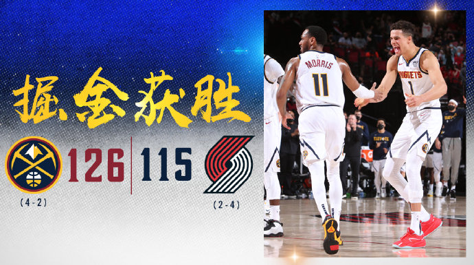 单节比分:29-33,32-35,37-33,28-14(掘金在前) 掘金(4-2):约基奇36分8篮板6助攻,波特26分5篮板4助攻,戈登13分7篮板4助攻,坎帕佐10分2篮板3助攻,里弗斯7分,莫里斯22分4篮板9助攻3抢断,格林10分9篮板。