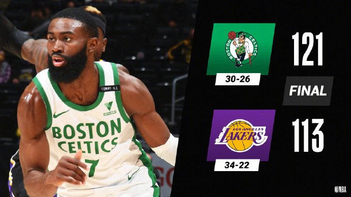 湖人(34-22):塔克19分7板7助3断、麦克勒莫17分3板2助、小加18分4板3助、库兹马13分2板、哈雷尔12分8板3助、麦金尼10分2板、施罗德8分8助、卡鲁索6分2板、卡考克3分、马修斯3分2断、波普2分3板2助3断、字母弟2分4板。