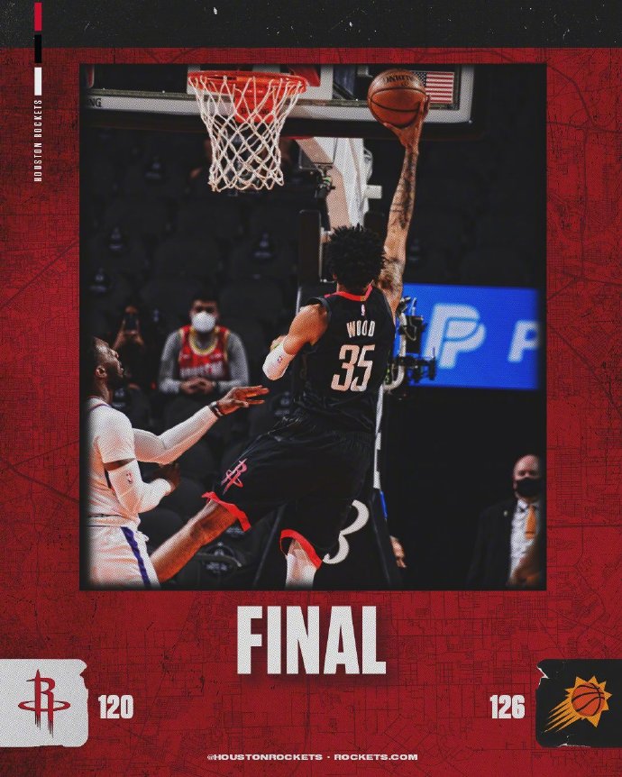 JRS低调看直播4月13日讯 火箭做客菲尼克斯挑战太阳,目前火箭排名联盟倒数第二,仅领先倒数第一的森林狼半个胜场,而太阳距离联盟第一则还差2.5场。首节上来两队势均力敌一路僵持,沃尔和伍德合砍21分为火箭攻城拔寨,然而太阳的板凳球员却是技高一筹,节末一波16-4的攻击波确立了两位数的领先优势,次节太阳的三分雨仍在继续,尤其是克劳德大放异彩半场即命中8记三分,而全队24中18高达75%的三分命中率也是着实恐怖,太阳带着23分的优势结束半场。第三节火箭利用太阳的松懈打出一波19-7的攻击波迫近分差,可之后过多的失误却让他们未能更进一步,末节顽强的火箭又在布鲁克斯和威尔森的带领下送出19-5的攻势将分差缩小到5分,怎奈关键时刻还是棋差一着,艾顿制霸禁区让火箭的努力化为泡影,最终太阳主场126-120战胜火箭。