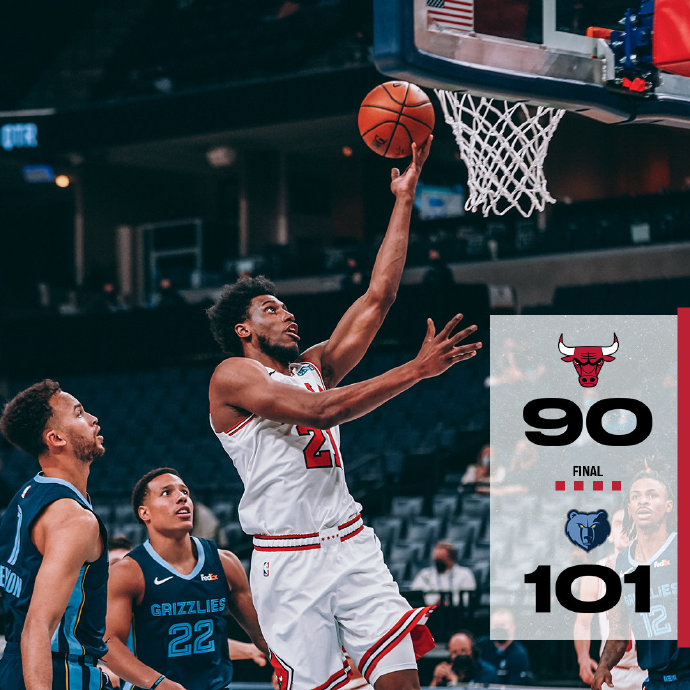 公牛(22-31):武切维奇17分10板、拉文21分9助、赛迪斯杨20分、泰斯18分4板、怀特6分