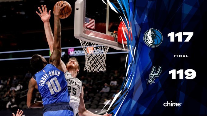 JRS低调看直播4月12日讯 独行侠今日坐镇主场迎战马刺,独行侠凭借近期7场比赛赢下6场稳住第七的排名,原本排名高于独行侠的马刺却在一波5连败之中跌出了西部前八。首节争夺马刺状态出色抢先机并取得领先,不过独行侠方面依靠波尔津吉斯首节独砍13分5篮板的发挥及时止血并在节末追平比分,次节对决独行侠在拉锯战中再一次突围,节末多点开花的独行侠用一波15-3的进攻高潮取得领先并带着5分优势进入下半场。下半场争夺马刺抢到两节比赛的开局,第三节节初一波13-4的攻势帮助他们反超比分,第四节开局他们再送11-2的攻势拉开比分,独行侠为两次糟糕的开局买单,不过两次他们都在最后时刻上演追分大戏,末节凭借东契奇连投带罚拿下4分独行侠抹平比分,奈何一整场都表现出色的德罗赞又一次取得进球,他的致命跳投帮助马刺上演绝杀。最终,马刺客场绝杀独行侠结束5连败。