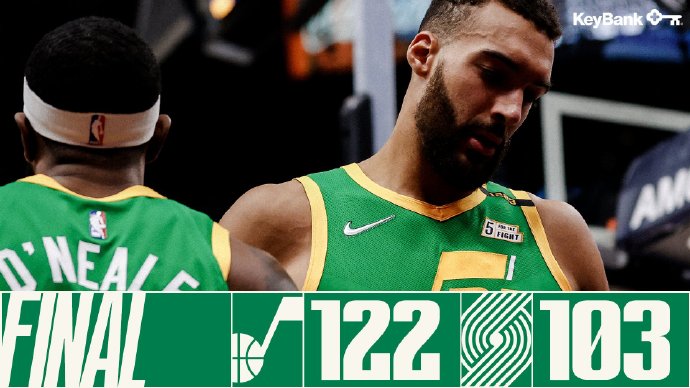 JRS低调看直播4月9日讯 NBA常规赛爵士主场迎来开拓者的挑战,虽然爵士仍旧占据榜首的位置,但是近来遭遇2连败。刚开场米切尔接连砍分帮助爵士取得领先,开拓者后场三名枪手轮番拿分帮助开拓者紧咬比分。第二节虽然前半段爵士仍旧牢牢保持领先,但随后开拓者打出一波12-0的高潮完成反超,上半场开拓者56-53领先3分。下半场回来米切尔带领爵士首先反扑完成反超,随后爵士又多次打出高潮单节净胜开拓者21分一举拉开比分,第四节开拓者也未能缩小分差,最终爵士122-103轻松击败开拓者结束2连败,同时他们取得主场23连胜。