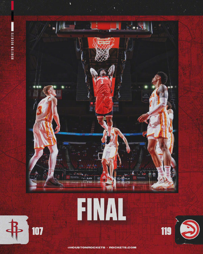 JRS低调看直播3月17日讯 NBA常规赛火箭主场对阵老鹰,火箭近来已经创队史的遭遇16连败,反观老鹰近来状态不错取得5连胜。开场后虽然火箭首先进入状态,但特雷-杨和加里纳利先手找到手感帮助老鹰在首节便取得两位数优势,第二节老鹰外线手感火热一度将分差拉大到23分,但奥拉迪波和波特两人联手又为火箭咬住比分,上半场老鹰73-58领先火箭。下半场回来火箭在奥拉迪波的带领下掀起反扑,他们外线连中三分在三节结束时将比分追到只差1分。但第四节老鹰迅速调整重新建立领先,最终老鹰119-107送给火箭17连败。