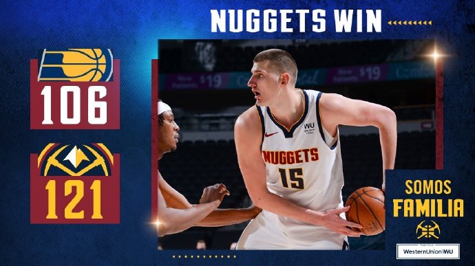 JRS低调看直播3月16日讯 NBA常规赛,掘金今日坐镇主场迎来步行者的挑战,前者上场输给独行侠后排在西部第五,后者上场战胜太阳后暂列东部第九,本场比赛沃伦,兰姆,哈里斯缺阵。首节比赛,双方上来三分手感火热,两队也十分谨慎接连暂停,开始掘金依靠巴顿首节三分4中4独得14分领先步行者12分,但是首节末段步行者连续投进5记3分将分差抹平。次节开始,步行者突然哑火7分钟里仅得到5分,掘金火力全开,上来全队就轰进6记三分,突破也不断打进将分差拉开到20分,次节末段步行者依靠布罗格登和J-霍勒迪的2记三分将分差又缩小到12分,随后双方对攻几个,次节结束掘金继续领先步行者9分。易边再战,掘金本节失误增多被步行者抓住机会将分差缩小到2分,随后步行者连续投进3记三分将比分反超,最后2分钟后双方进攻端连续打铁1分未得,步行者反超4分进入末节。末节之争,步行者突然哑火7分钟里仅得到2分,掘金抓住机会弧顶三分,反击上篮通通打进,直接打出一波22-2将分差反超16分。之后时间逐渐流失,步行者追分未果,最终掘金121-106战胜步行者。