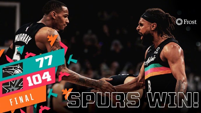 JRS低调看直播3月13日讯 NBA常规赛,魔术做客圣安东尼奥挑战马刺,前者近期遭遇6连败已经掉落至东部倒数第二位,后者也是2连败滑落至西部第七位,双方都急需一场胜利,本场比赛德罗赞缺阵,魔术多名主力球员因伤也打不了。开局阶段,魔术就打出10-2开局一举建立优势,马刺没有状态连续打铁且末段再次陷入得分荒,魔术带领13分的优势进入次节,次节马刺提升防守强度让魔术半节只得到2分,进攻端也打出10-0攻击波将比分扳平,后半段马刺持续发力反超8分进入下半场。易边再战,马刺打出6-0小高潮扩大分差,魔术众将连续4个三分将分差迅速缩小,马刺瓦塞尔也连中三分稳住局势,三节结束马刺依然领先10分。末节上来盖伊率领马刺再打出9-0,随后马刺全面开花将分差扩大至20分以上,魔术无力抵抗,最终马刺大胜魔术,送给对手7连败。