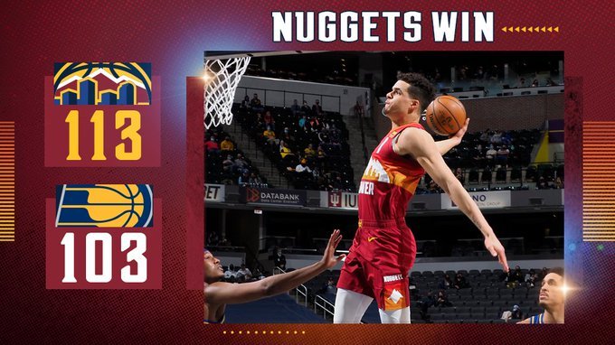 JRS低调看直播3月5日讯 NBA常规赛,步行者今日坐镇主场迎来掘金的挑战,前者上场战胜骑士后暂列东部第九,后者状态不错三连胜排在西部第七的位置,本场比赛掘金由于健康管理协定和伤病,米尔萨普、坎帕佐多人缺阵。首节比赛双方状态不错,先是掘金上来就打出一波13-2得到领先优势,随后掘金突然哑火,步行者则火力全开,依靠特纳和霍勒迪的三分和全队的反击突然打出一波17-0又将分差反超6分,最后几分钟掘金依靠穆雷和巴顿的发挥将分差缩小到1分。次节比赛掘金上来手感继续火热,内线外线多点开花将分差反超6分,而步行者本节手感不佳依靠特纳的冲抢咬住比分,掘金最后依靠全队发挥领先步行者9分结束次节。易边再战,双方上来进攻效率不高,掘金则是连续失误被步行者抓住机会一举将比分扳平。掘金暂停调整后约基奇开始发挥连续助攻队友打进帮助掘金重新取得8分领先,双方对攻几个后掘金继续保持8分领先进入末节。末节之争,步行者上来突然哑火,而掘金则是火力全开波特连续飙进3分,穆雷反击也不断打进,掘金打出一波17-7将分差扩大到18分。末节最后时刻步行者连续飙进3记三分强行保持比赛悬念,但是最后时间不够步行者追分未果,最终掘金113-103战胜步行者迎四连胜。