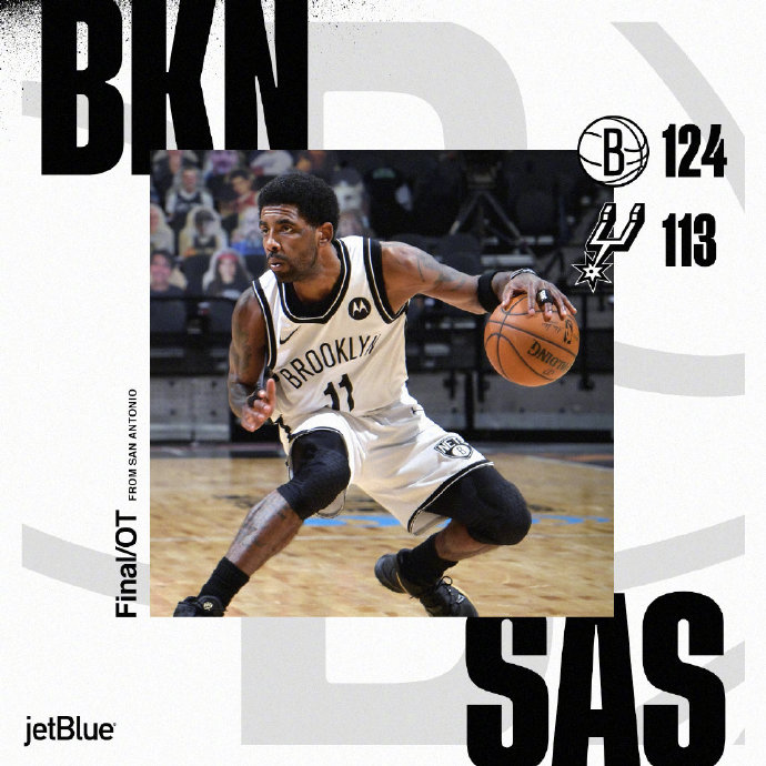 JRS低调看直播3月2日讯 被独行侠终结8连胜的篮网今日做客圣安东尼奥迎战马刺,此役欧文复出,杰夫-格林则继续因伤缺席。首节哈登虽然一分未得,但他却送出6次助攻盘活了全队,在他的穿针引线下篮网多点开花,一波8-0的攻势很快便确立了领先优势。次节,马刺依靠突破冲击内线一度追平比分,但靠着哈登的单打以及奇兵克拉克斯顿单节13分的神奇表现,篮网又重新拉开分差,节末马刺下起一波三分雨顽强地将分差缩小至3分。第三节马刺利用对手进攻效率下降的良机,靠着沃克、珀尔特尔、穆雷的反复冲击终于将比分追平,末节哈登开始接管比赛,一波16-3的攻势让马刺瞬间陷入被动,但马刺却在最后时刻三军用命回敬一波16-6将分差缩小至2分,关键时刻穆雷命中压哨绝平球将比赛拖入加时。加时赛,欧文、布朗和哈登连续命中四记三分,马刺没能重演奇迹,最终篮网客场124-113击败马刺。