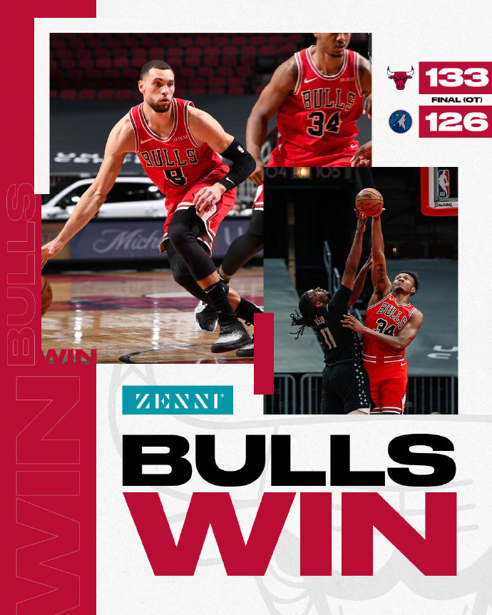 JRS低调看直播2月25日讯 今日东部第八的公牛主场迎战联盟垫底的森林狼。森林狼在上一场刚经历换帅,目前已经遭遇5连败。即使唐斯已经复出多场,但森林狼的战绩依然没有起色。公牛则刚刚跻身东部第八,拉文若想带领球队时隔多年重返季后赛,今天这场比赛则不能犯错。首节,先进入状态的是森林狼,并掌控着前半节的节奏。后半节拉文带队反击并紧咬比分,双方以一个球的差距结束。次节双方加快攻防节奏,公牛开局打出12-4的进攻,在行进半节时把领先扩大到两位数。森林狼在后半节进攻才有起色,但公牛在半场结束前仍把分差保持在两位数。下半场,双方各打了半节好球。森林狼依靠比斯利和唐斯努力在追分,公牛则由拉文和萨托兰斯基联手稳住局面。末节,森林狼快速缩小分差,双方也提前进入决战时刻。最后12秒卢比奥造三分犯规,双方进入加时赛。加时赛,拉文和怀特成为了主角,森林狼没能实现逆转。最终公牛通过加时赛133-126赢下比赛。