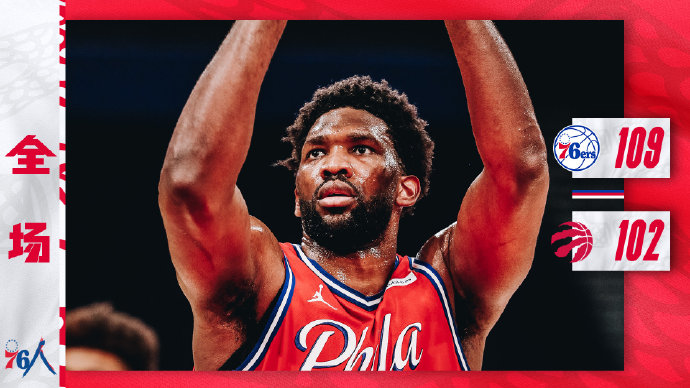76人(20-11):格林11分5板2助3断,哈里斯23分7板5助2帽,恩比德18分12板,科克马兹19分7板,西蒙斯15分9板7助,米尔顿11分,塞布尔7分3板,斯科特3分5板,霍华德2分4板