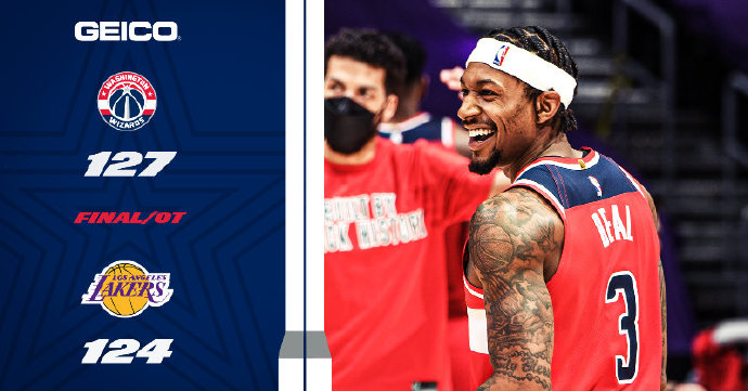 JRS低调看直播2月23日讯 最近4场比赛输掉3场的湖人重整旗鼓迎来奇才的挑战,和湖人相反的是,奇才近期连克强敌取得4连胜状态正佳。湖人首节和奇才僵持半节时间后,依靠着哈雷尔连砍8分的表现突围而出取得领先,而在次节他们抗住了奇才的追赶稳守两位数领先,詹姆斯半场贡献13分7助攻的数据帮助湖人建立起14分的领先。然而下半场场面风云突变,奇才在第三节末段用一波16-4的进攻高潮迅速追上比分,末节中段再送10-0的攻势上演大逆转。不过关键时刻湖人接连命中三记三分抹平比分,但詹姆斯最后关键加罚不中错失良机,比赛拖入加时。加时赛中威少联手比尔拿下全部的12分成为取胜功臣,而湖人一路追分被动一直没能扭转局势。最终,奇才逆转湖人迎来5连胜,而湖人遭遇3连败。