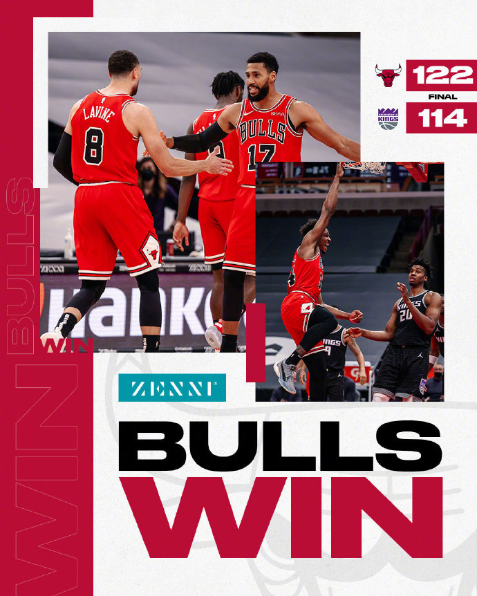 JRS低调看直播2月21日讯 NBA常规赛公牛主场迎战国王,此前国王已经遭遇五连败,本场巴恩斯和霍姆斯因伤缺席。国王将怀特塞德提上首发,和巴格利组成双塔,开场后两队交替得分,随后国王连续失误,公牛逐渐取得领先,次节两队进入对攻战,内线防守都被对方轻易打穿,拉文半场已经拿下20分,助公牛68-58维持领先优势。下半场易边再战,两队得分效率下滑,在拉锯战中,国王始终没能缩小分差,第三节最后0.7秒威廉姆斯还飙中超远三分。末节开局国王打出小高潮,终于将分差迫近到两分,但拉文连续突破,如入无人之境,分差很快重新拉大到十分,国王反超的希望破灭,114-122,遭遇六连败。