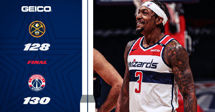 JRS低调看直播2月18日讯 NBA常规赛,奇才今日坐镇主场迎战掘金,前者2连胜后排在东部第十四位,后者上场比赛输给凯尔特人后暂列西部第七位。首节比赛掘金进攻端一直压制着奇才,约基奇状态出色6中6首节独得15分带领掘金取得17分领先。次节掘金在首节取得大领先后突然哑火,而奇才火力全开单节全队轰下46分反超掘金6分。第三节双方旗鼓相当,进攻端你来我往,分差继续维持在7分。末节之争,奇才前半段贝尔斯坦手感依旧单场轰进9记三分帮助奇才保持领先,后半段掘金轰出21-10将比分扳平,随后贝尔斯坦造到三分犯规帮助奇才继续领先,最后5.3秒穆雷命中扳平三分,最后比尔造成格林犯规罚球绝杀掘金。