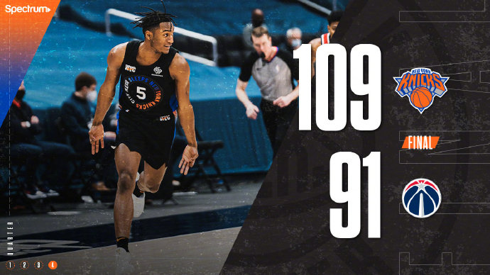 JRS低调看直播2月13日讯 NBA常规赛,奇才今日坐镇主场迎来尼克斯的挑战,奇才近期状态起伏较大上轮输球排名东部第14,而尼克斯则遭遇两连败排名东部第10。双方首节上来陷入短暂僵持后,尼克斯率先拉开分差,首节结束尼克斯领先7分,次节尼克斯一直保持两位数领先优势半场结束领先奇才11分。下半场上来奇才凭借外线多点开花不断缩小分差,但尼克斯依靠篮下统治力在三节尾声再度将分差拉大三节领先15分;末节尼克斯外线火力全开将分差扩大到20+,比赛提前失去悬念,最终尼克斯109-91大胜奇才终结连败。