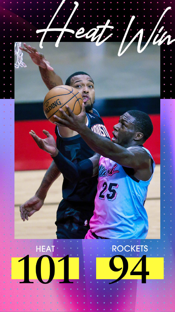 JRS低调看直播2月12日讯 火箭坐镇主场迎战热火,希罗因健康与安全协议缺阵。上半场火箭率先找到手感,考辛斯、戈登和沃尔轮番得分,帮助火箭一路领先,以53-47结束半场。易边再战,火箭在第三节突然哑火,单节只得到10分,且奥拉迪波和塔克接连因伤离场。热火则找到外线手感,巴特勒、纳恩和邓肯-罗宾逊连中三分,热火凭借凶猛的外线火力完成比分反超并建立起两位数领先。末节火箭展开疯狂反扑,泰特和沃尔在比赛末连续得手,带领火箭在最后1分钟把分差缩小到3分。不过,伊格达拉在最后45秒连续抢下两个前场篮板,火箭在时间不够的情况下只能采用犯规战术,巴特勒稳稳命中罚球,热火就此锁定胜局。最终,热火在客场以101-94力克火箭,豪取4连胜,同时送给火箭4连败。