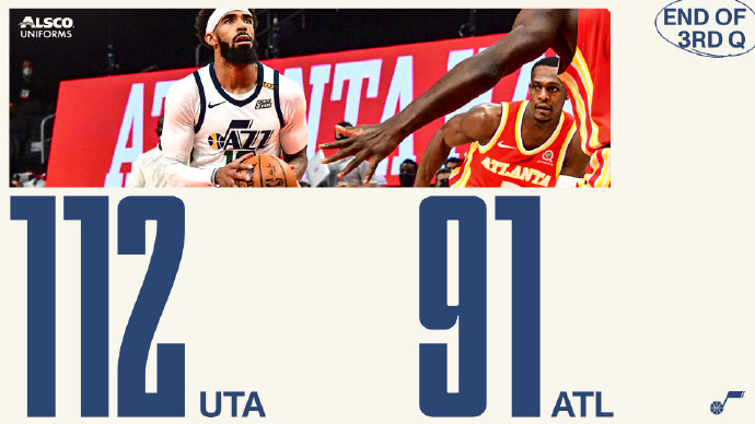 JRS低调看直播2月5日讯 NBA常规赛老鹰主场迎战爵士,特雷-杨今日缺战。开场后虽然许尔特首先拿分,但米切尔和博扬联手一波12-0帮助爵士取得领先,首节两队都失误不少,许尔特多次为老鹰追分,第二节两队手感仍旧一般,爵士还是稍稍占据优势,上半场爵士45-37领先。下半场回来在米切尔和博扬的带领下爵士打出攻势拉开比分,第四节爵士更是将分差拉大到20分开外,比赛失去悬念,最终爵士112-91轻松战胜老鹰。