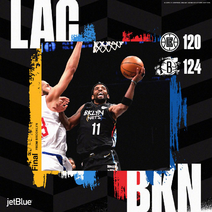 JRS低调看直播2月3日讯 NBA常规赛快船客场挑战篮网,快船3连胜后占据西部第一。开场快船顺风顺水早早取得10分领先,莱昂纳德和乔治两人轮番拿分,不过篮网三巨头轮流拿分咬住比分,第二节篮网内外开花缩小分差,雷吉和小莫里斯发挥出色,不过杜兰特和欧文也马上回敬攻势,上半场快船58-51领先1分。下半场回来欧文不断送上个人表现拿分,不过巴图姆外线手感火热,莱昂纳德也连连拿分,三节过后快船仍旧守住领先。但第四节欧文仍旧状态神勇帮助篮网一举反超比分,最后时刻两队罚球大战,篮网有惊无险地拿下胜利,最终篮网124-120逆转终结快船3连胜。