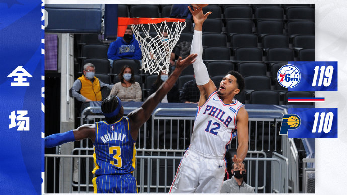 JRS低调看直播2月1日讯 NBA常规赛步行者主场对阵76人,76人虽然近来取得2连胜,不过恩比德因为背部紧张缺阵。开场后布罗格登一阵连续拿分帮助步行者取得领先,随后麦康纳替补登场后也手感火热,首节步行者就取得10分优势,第二节76人依靠三分一度缩小分差,但萨博尼斯接连单打得手,加上布罗格登依旧发挥稳定,步行者63-54领先结束上半场。下半场步行者外线率先投开,萨博尼斯内线发挥亮眼一度帮助步行者领先到20分。不过76人迅速调整又重新咬住比分,并且在哈里斯和科克马兹的发挥下在最后关头打出攻势完成反超,步行者进攻断电,最终76人119-110逆转步行者拿下3连胜。