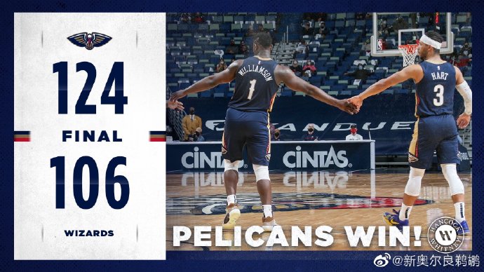 JRS低调看直播1月28日讯 NBA常规赛奇才客场挑战鹈鹕,两队最近状态都表现不好,鹈鹕遭遇3连败,奇才2连败后已经在东部垫底,本场比赛威少缺阵。开场后鹈鹕抢得先机,随后奇才进攻断电,锡安内线连续拿分帮助鹈鹕在第一节建立17分领先。第二节回来小洛佩兹上来内线不断拿分,锡安也在内线强势回应,接着鹈鹕外线连中三分将分差拉大到20分,此后比尔再次站出来为奇才追分,上半场鹈鹕64-45领先。下半场回来两队大打对攻战,比尔第三节单节砍下24分帮助奇才略微缩小分差,但鹈鹕发挥稳定没有让奇才追上比分,最终鹈鹕124-106击败奇才结束3连败。