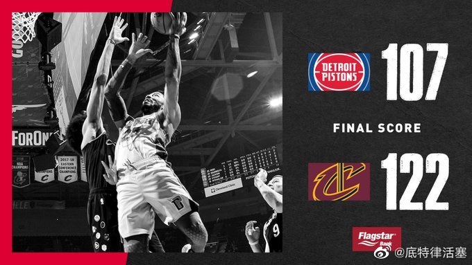 JRS低调看直播1月28日讯 NBA常规赛骑士主场对阵活塞,近来骑士遭遇2连败,开场后活塞依靠外线三分取得领先,德拉蒙德内线连续拿分,此后骑士通过反击和杀入内线追平比分。第二节骑士失误不断,活塞一举将比分反超,不过骑士迅速调整紧咬比分,上半场活塞56-54领先2分。下半场回来骑士攻势凶猛一举夺回领先,塞克斯顿和德拉蒙德一内一外都发挥出色,他们在第四节将分差拉大到19分一举锁定胜局,最终骑士122-107击败活塞。
