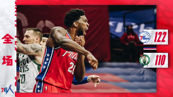 JRS低调看直播1月23日讯 76人坐镇主场迎战凯尔特人,此役小库里复出,塔图姆则因健康安全协议继续缺阵。上半场杰伦-布朗、斯玛特和沃克轮番得分,帮助绿军一路保持着领先。不过,76人在下半场找到手感,恩比德连续砍分,哈里斯和小库里等连中三分,多点开花的76人打出高潮反超比分。末节布朗率领绿军展开反扑,但西蒙斯在关键时刻爆发连得7分,帮助76人压制住绿军的追分势头。最终,76人以122-110获胜,送给绿军3连败。