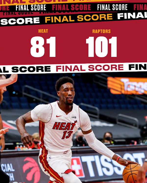 JRS低调看直播1月23日讯 猛龙今日坐镇主场迎来热火的挑战,两队2天前刚刚结束一场较量,猛龙不敌热火结束近期势头不错的3连胜,伤病方面两队核心后卫洛瑞和希罗均缺阵。首节比赛猛龙早早进入状态并在外线频频远投得分,早早起势的他们凭借单节8记三分一举确立起17分领先,次节猛龙进攻状态相较第一节明显回落,而热火虽然找到三分手感但效率也不算太高,这一节他们仅追回3分,半场结束时仍然落后猛龙14分。第三节热火突然起势并在节中一度抹平14分的劣势,但猛龙及时回暖迅速做出回应,节中替补合力先送一波10-0的攻势稳住局面,末节对攻猛龙全面压制对手并将领先拉大至20分早早奠定胜局。最终,猛龙主场大胜热火完美复仇。