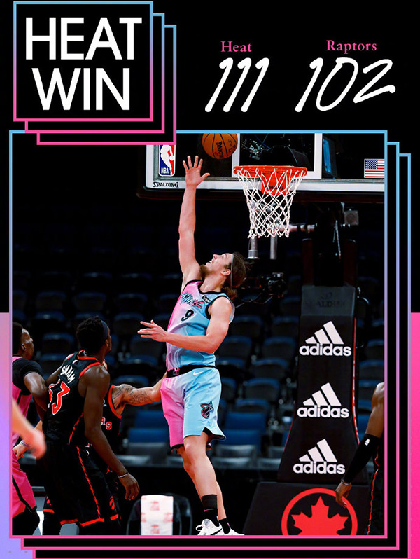 JRS低调看直播1月21日讯 猛龙坐镇主场迎战热火,此役巴特勒、希罗等继续缺阵。首节邓肯-罗宾逊连中三分,帮助热火取得领先。但猛龙在次节找到外线手感给予回敬,在半场结束以58-56成功反超比分。易边再战,纳恩在第三节里突外投连续砍分,率领热火重夺领先。而猛龙在末节未能掀起追分攻势,反而陷入长达5分钟的得分荒,热火捉住机会进一步拉开比分。最终,6人得分上双的热火在客场以111-102击败猛龙,取得2连胜,同时终结了猛龙的3连胜。