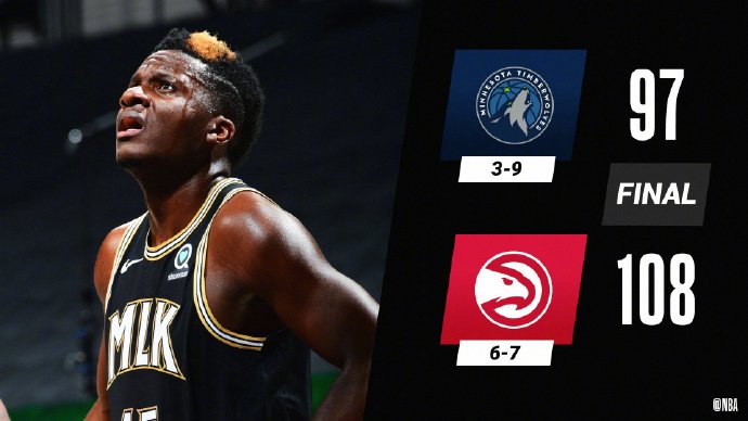 JRS低调看直播1月19日讯 NBA常规赛老鹰主场对阵森林狼,老鹰最近遭遇2连败,森林狼则是在西部垫底。开场后两队进入状态都比较慢,老鹰率先打出攻势取得领先,不过森林狼咬住比分。第二节在特雷-杨带领下老鹰一度将分差拉大到两位数,不过森林狼外线连中三分又缩小分差,上半场老鹰58-51领先。下半场刚上来森林狼就打出攻势追平比分,不过老鹰依靠科林斯和亨特的发挥建立起两位数优势,森林狼森林狼进攻不力,但老鹰也失误频频,特雷-杨受到犯规困扰只得多次下场休息,最后一节老鹰守住领先,森林狼未能翻盘,最终老鹰108-97击败森林狼结束2连败。