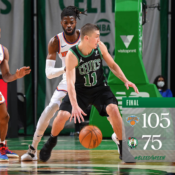 JRS低调看直播1月18日讯 NBA常规赛,凯尔特人坐镇主场迎战尼克斯。此役,绿军主将肯巴-沃克迎来赛季首秀,塔图姆等人缺阵。首节比赛,杰伦-布朗高效拿下11分,但绿军其他球员合计仅得6分,而尼克斯双星兰德尔和巴雷特合砍19分10板,带队以28-17领先。第二节,尼克斯新秀奎克利表现出色,他连连得分帮助尼克斯打出进攻高潮,一举将分差拉大到15分。下半场开局,尼克斯再度轰出攻击波,把领先优势扩大到20+!而刚刚复出的沃克一度因伤返回更衣室,好在没有大碍,本场未继续出战。末节比赛沦为垃圾时间,尼克斯最终在客场以105-75大胜凯尔特人,结束五连败,并终结对手的五连胜。