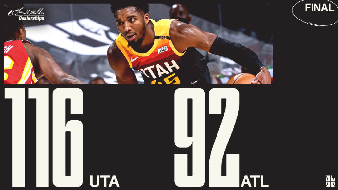 JRS低调看直播1月16日讯 爵士坐镇主场迎战老鹰,此役爵士外线手感火热,康利、米切尔和博格达诺维奇连中三分,早早就帮助爵士建立起两位数领先。之后卡佩拉和科林斯轮番冲击内线为老鹰追分,但是米切尔在次节再度开火连续命中三分,率领爵士抵挡住老鹰的追分势头,以61-46保持两位数领先结束上半场。易边再战,爵士延续着手感,米切尔、博格丹诺维奇和克拉克森再轮番轰进三分,多点开花的爵士进一步扩大领先,比赛悬念提前失去。最终,爵士兵不血刃地以116-92击退老鹰,取得4连胜。