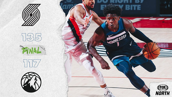 JRS低调看直播1月8日讯 NBA常规赛,开拓者今日迎战森林狼,前者两连败后下滑至西部第八位,而后者更是惨遭五连败西部垫底。比赛上来拉塞尔连续得分帮着森林狼取得领先,但调整过后的开拓者逐渐追上比分,次节更是利用一波攻势拉开分差,半场结束时开拓者领先19分。易边再战,森林狼没有找到限制对手的办法,场上分差已经突破了三十分,末节森林狼虽然将分差缩小到十几分,但终究没能获得逆转比赛的机会,最终开拓者大胜森林狼,送给后者六连败。