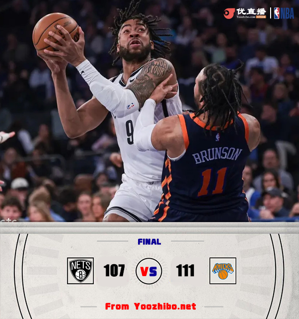 JRS低调看直播讯 4月13日讯 NBA常规赛尼克斯主场对阵篮网,尼克斯最近3连胜冲到东部第三,篮网东部第十一早已无缘季后赛。开场后尼克斯先发手感不佳,布伦森首节4投0中,篮网则是靠托马斯和沃特福德的发挥取得两位数领先。第二节尼克斯经过半节时间终于找到手感,他们在半场结束前掀起攻势将分差追到个位数。易边再战尼克斯上来一波9-0抹平分差,此后篮网进攻表现不佳,尼克斯趁机反超并建立起领先,最后一节虽然篮网努力追分但未能翻盘,最终尼克斯111-107逆转击败篮网取得4连胜。