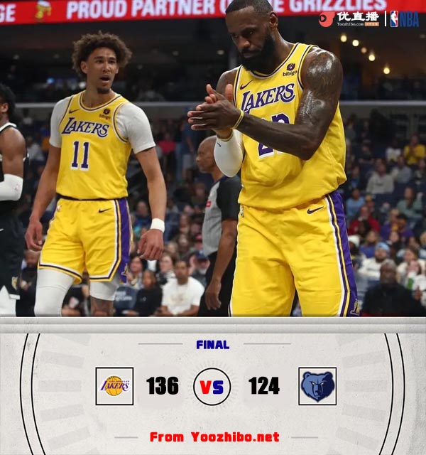 JRS低调看直播3月28日讯 湖人今日奔赴孟菲斯挑战灰熊,湖人近期状态非常不错,上一场在缺少詹姆斯的情况下上演大逆转并迎来4连胜;灰熊则早早进入练兵模式,近期6场输掉5场;阵容方面浓眉哥因膝盖伤势缺阵,詹姆斯缺阵一场迎来复出。首节之争双方对拼进攻互不相让,湖人虽然大部分时间保持微弱优势但也占不到太大便宜,灰熊末段一波6-0的攻势追至1分;次节开局双方依旧疯狂对攻,双方开局总计8个回合打成7球效率高的出奇,不过湖人节中抓住机会送出12-5的攻势并奠定半场8分领先。休息归来拉塞尔和八村垒包揽球队前14分并带队送出14-5的攻势拉开两位数分差,不过灰熊在最多落后27分的情况下及时反弹,他们第三节末段送出21-4的攻势追至10分重燃希望;不过末节开局湖人不断造杀伤拿分牢牢守住10分以上的领先。最终,湖人客场击败灰熊迎来5连胜。