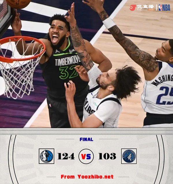 JRS低调看直播5月31日讯 森林狼今日继续坐镇主场迎来和独行侠的西部决赛G5之战,独行侠虽然上一场输球,但目前手握赛点的他们仍然占据着绝对的晋级主动权,与此同时上一场缺阵的莱夫利本场回归。首节之争东契奇火力全开单节11投8中砍下20分,个人单节得分比森林狼这一节的总分还多1分,同时运动战进球数和森林狼全队持平,独行侠在他的爆发中首节就拿到16分领先;次节欧文领衔替补阵容并送出11-4的攻势将优势拉大至20分以上;森林狼这边攻防问题都很大,防守尖兵麦克丹尼尔斯早早领到三犯被迫下场。上半场最后5分钟里森林狼彻底崩盘,独行侠则在连拿9分的欧文带领下送出17-4的攻势确立起29分领先进入下半场。休息归来独行侠虽然占不到便宜但巨大优势之下压力不大,森林狼第三节末段送出13-6的攻势但仍然还有22分的巨大分差;独行侠整体攻势稳定一直牢牢控制着大比分领先没有受到太大威胁。最终,独行侠客场轻取独行侠,并以4-1的总比分淘汰森林狼杀入总决赛,他们的对手是凯尔特人。