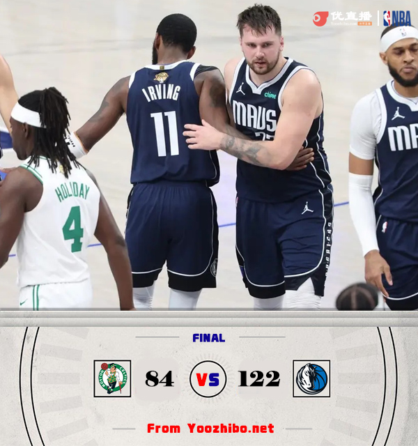 JRS低调看直播 6月15日讯 NBA总决赛G4,独行侠今日继续在主场迎战凯尔特人,双方前三战凯尔特人都取得胜利,目前大比分3-0领先获得冠军点,独行侠则是身处绝境。比赛上来,独行侠先拿四分取得领先,虽然双探花连得七分实现反超,但整个第一节凯尔特人的进攻表现糟糕,独行侠利用一波10-0的小高潮将分差拉开到两位数,次节凯尔特人的进攻更差,单节只拿到14分,而东契奇则依旧是不可阻挡,半场结束时独行侠已经领先了26分;易边再战,凯尔特人还是无法限制对手的攻势,独行侠连续命中三分后分差突破了三十分,凯尔特人也是在三节末段换下主力,末节比赛已经彻底沦为垃圾时间,最终独行侠大胜凯尔特人,大比分追至1-3拒绝横扫。