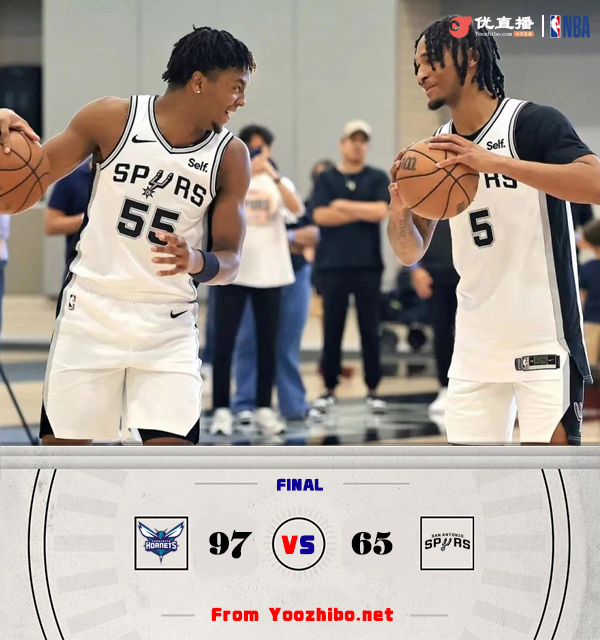 JRS低调看直播讯 7月7日讯 NBA夏季联赛加州经典赛今日开打,马刺和黄蜂迎来一场对决。马刺方面今年4号新秀卡斯尔首发出战。首节之争马刺虽然坐拥卡斯尔这样的高位新秀但球队整体表现比较糟糕,整个第一节他们仅得9分早早落入下风;反观黄蜂这边人人争先上来就是一波12-4的开局并奠定首节14分优势;次节马刺虽然找回状态但难耐稳定输出的黄蜂,盖耶半场砍下15分帮助黄蜂带着14分领先进入下半场。休息归来马刺开局打出11-6的攻势短暂追至个位数,但回头就被黄蜂连续抓反击重新拉开比分;这之后黄蜂一路占据主动,末节开局一波15-4的攻势直接将分差拉大至27分早早奠定胜局。最终,黄蜂97-65轻取马刺迎来加州夏联的开门红。