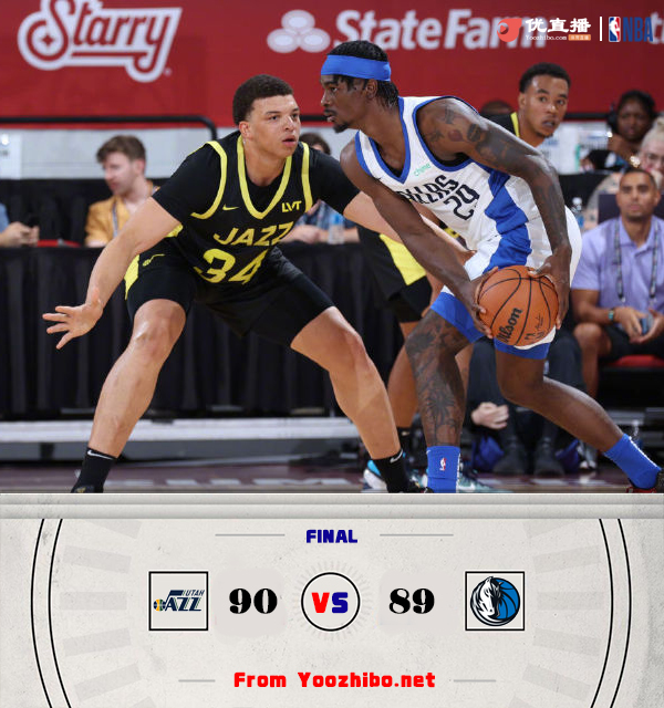 JRS低调看直播 7月14日讯 NBA夏季联赛继续进行,独行侠对阵爵士,爵士这边洛夫顿和贝兹利领衔,去年的9号秀亨德里克斯和今年的10号秀科迪-威廉姆斯、布朗尼的南加大队友科利尔在列,独行侠这边,普罗斯珀和AJ-劳森领衔出战。此役一上来爵士率先找到节奏,菲利波夫斯基和科利尔内外开花,率队打出9-2开局,末段布兰登-威廉姆斯率队回敬8-2小高潮,首节结束时爵士领先1分,次节回来,戈特曼飚中反超三分,两队拉开架势展开对攻,半场战罢,独行侠反超1分。短暂调整后双方继续僵持,但中段爵士进攻哑火,独行侠一波9-2拉开比分,三节结束后独行侠领先6分,末节上来,独行侠进攻突然断电,爵士顺势轰出14-0进攻高潮,独行侠内线连续取分稳住阵脚,决胜时刻洛夫顿抢板推人犯规,但劳森两罚一中,随后洛夫顿突破上篮造犯规,独行侠挑战失败,洛夫顿两罚一中后独行侠绝杀未果,最终爵士90-89险胜独行侠。