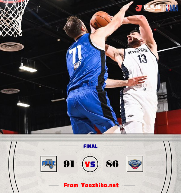 JRS低调看直播讯 7月15日 NBA夏季联赛,魔术对阵鹈鹕。一开场,魔术率先发力,内外开花打出13-1的攻击波取得两位数领先,鹈鹕连中三分回敬12-0迅速反超,次节双方陷入缠斗,此后魔术命中率下降,鹈鹕持续发力轰出15-0的进攻高潮以45-35领先结束上半场。下半场,霍华德三分艰难破荒,双方围绕10分左右分差展开拉锯战,末节魔术内外开花不断蚕食分差并完成反超,鹈鹕进攻端迟迟找不到节奏,魔术稳扎稳打将优势保持到最后。最终,魔术91-86逆转鹈鹕,取得胜利。