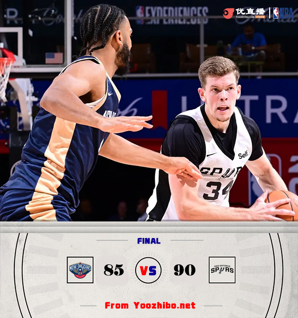 JRS低调看直播7月17日讯 NBA夏季联赛继续进行,马刺迎战鹈鹕,去年的14号秀乔丹-霍金斯领衔鹈鹕阵容,马刺这边,两位去年的次轮秀哈里森-英格拉姆和西迪-西索科领衔出战。此役一上来,两队便你来我往比分紧咬,英格拉姆手感发烫连中三分,鹈鹕则在内线连续取分,首节结束时两队战成21平,次节回来,米尼克斯连投带罚单节贡献8分,帮助马刺一度确立优势,马特科维奇连续暴扣强势回应,半场战罢,马刺领先4分。短暂调整后马刺内外开花再度拉开比分,鹈鹕内线取分止住颓势,三节结束后马刺继续领先7分,末节上来,场上形势风云突变,马特科维奇里突外投无人可挡,率领鹈鹕一波16-6抹平分差,决胜时刻布耶连拿5分,鹈鹕绝平三分不中,多诺万-威廉姆斯摘下关键篮板后两罚全中锁定胜局,最终马刺90-85力克鹈鹕送对手夏联3连败。